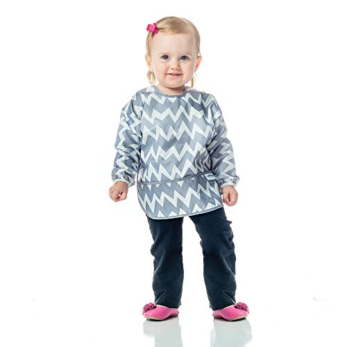 Bumkins Waterproof Sleeved Bib, Gray Chevron (6-24 Months)