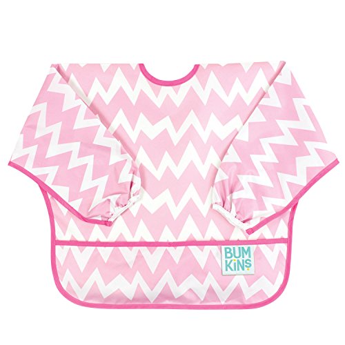 Bumkins Waterproof Sleeved Bib, Pink Chevron (6-24 Months)