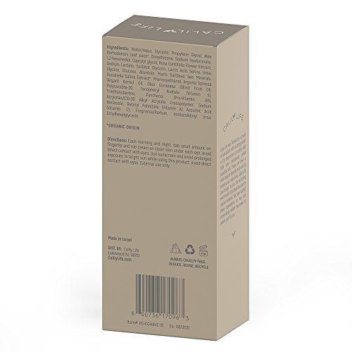 -. Feature : ORGANIC & HIGH QUALITY - Contains Vitamin E and Argan Oil that deeply moisturizes and fights premature aging; Vitamins A, B5, C which are natural antioxidant to keep your skin powerfully protected and hydrated. Enriched with organic Dead Sea Minerals and extracts known for its deep skin hydration and repairing properties. Packaged with a pump to enable applying just the right amount and helps conserve the product while avoiding unnecessary oxidation or exposure to bacteria. / COMBATS AGING - Reduces the visible appearance of fine lines, wrinkles, under-eye bags, and dark circles while alleviating puffy eyes and promoting firmness and elasticity. / DEEP NOURISHMENT - The CalilyLife Hyaluronic Acid Eye Gel moisturizes, calms and protects the delicate skin surrounding the eyes. Enriched with powerful organic Dead Sea minerals the specially formulated cream renews and help regenerate cells; while strengthening skin fibers such as collagen and elastin. Transforms skin to be amazingly soft, supple and glowing! / REDUCES PUFFINESS & DARK CIRCLES - Reduces inflammation and stimulates circulation to help decrease the swelling and fluid retention that causes puffiness and dark circles; while its bounty of antioxidants helps protect from free-radical damage caused by everyday environmental exposure to pollution and sun damage. improve the overall appearance and health of skin. / FAST ABSORBING - Fast absorbing and non-greasy formula, designed to be worn under cosmetics. Perfect for day and night. Provides a smooth and oil-free canvas for applying foundation and cosmetics.