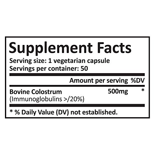 -. Binding : Health and Beauty -. Brand : Pure Science Supplements -. EAN : 0019962502255 -. Feature : PROTECTS THE DIGESTIVE SYSTEM: Bovine Colostrum boosts sIgA levels in the digestive tract, reducing inflammatory cytokines and pathogens. Colostrum supplement helps mend damaged gut lining, leaky gut, and control harmful bacteria from harming the intestinal lining. / IMMUNE FUNCTION BOOST: This bovine-derived supplement is rich in biologically active proteins. Colostrum bovine allows your immune system to function with greater efficiency and boost lymphocytes. / POTENT ANTIOXIDANT: Pure Science Colostrum 500mg contains antioxidant and other components to keep you in top shape longer. It gets rid of free radicals and metabolic waste products that cause rapid aging. It helps keep your skin looking YOUNG and HEALTHY. / GUARANTEED QUALITY AND SAFETY: Pure Science Bovine Colostrum capsules is proudly manufactured in the USA under certified GMP standards. This product is considered stable at FULL POTENCY FOR TWO YEARS from the manufacture date. / MONEY BACK GUARANTEE: Pure Science Bovine Colostrum pills is a totally risk-free buy. Our product is backed by a 100% money back guarantee; CLICK the Orange button to Order Now! -. IsAdultProduct : 0 -. Label : Pure Science Supplements -. Manufacturer : Pure Science Supplements -. MPN : Colostrum -. PackageQuantity : 1 -. PartNumber : Colostrum -. ProductGroup : Health and Beauty -. ProductTypeName : HEALTH_PERSONAL_CARE -. Publisher : Pure Science Supplements -. Studio : Pure Science Supplements -. Title : Pure Science Bovine Colostrum 500mg (Immunoglobulin >/20%) - Anti-Inflammation & Digestive System Support - 50 Vegetarian Capsules -. UPC : 019962502255