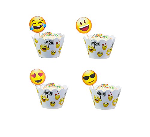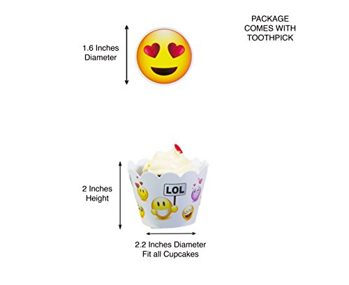 Emoji Cupcake topper Happy Birthday Party - Set of 24 Pack For Congratulation Decoration Anniversary Festival Graduation Bouquet Gift Idea bridal Engagement Parties Celebration Baby Shower Wedding