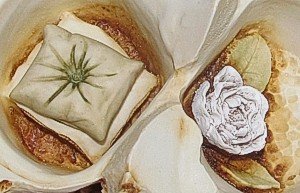 - David says that the inspiration for this first Romance Annual was the enduring nature of love, as swans pair for life. The plumage on each swan lifts up to reveal two hidden compartments, one containing a rose in tribute to Princess Diana, and the other containing a pillow that may be removed to reveal a red heart. David’s acorn is between the leaves on the base. The first 3,660 have swans with red beaks and blue pillows, the next 404 have yellow beaks and blue pillows, and the rest of the edition has yellow beaks and light green pillows. Hallmarks include ©, heart, HBC logo, ed.#, and DL.