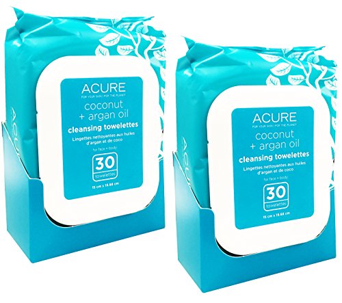 -. Title : Acure Coconut + Argan Oil Cleansing Towelettes for Face and Body Pack of 2 (60 Towelettes Total)