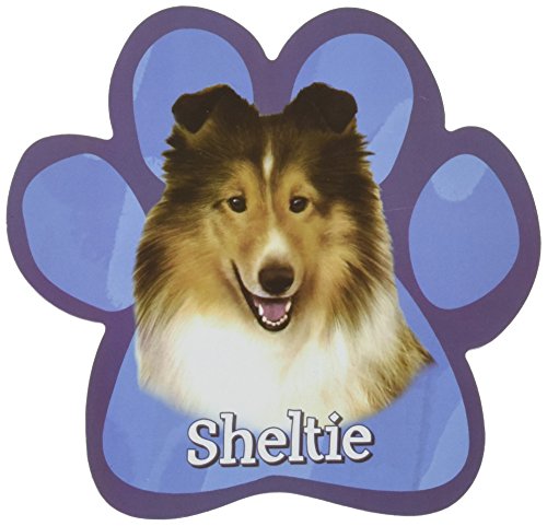 Sheltie Car Magnet With Unique Paw Shaped Design Measures 5.2 by 5.2 Inches Covered In UV Gloss For Weather Protection
