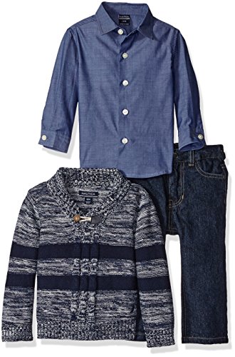 Nautica Baby Three Piece Set with Woven, Quarter Zip Sweater, Flat Front Twill Pants, Sport Navy, 24 Months