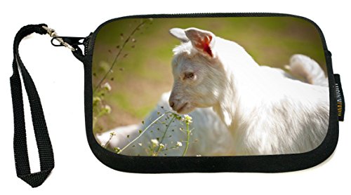 -. Title : UKBK White Baby Goat Close-Up Neoprene Clutch Wristlet