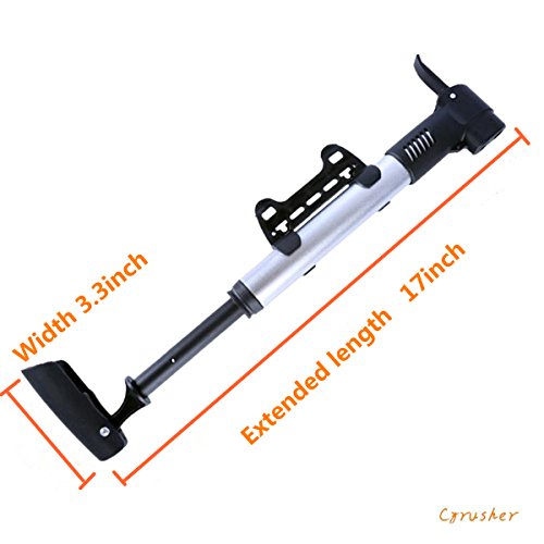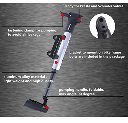 -. Brand : Cyrusher -. Color : silver black -. Feature : Length: minimum size 11", compact and portable mini size / Weight: 160g. Aluminum alloy make sure the lightweight. / Applicable valvePresta and Schrader. It applies to road, mountain and BMX bikes. / Frame mounted pump, you can mount it on bike frame. / It can also pump strollers and wheelchairs. -. IsAutographed : 0 -. IsMemorabilia : 0 -. Label : Cyrusher -. Manufacturer : Cyrusher -. Model : pump mini -. MPN : pump mini -. PartNumber : pump mini -. ProductGroup : Sports -. ProductTypeName : OUTDOOR_RECREATION_PRODUCT -. Publisher : Cyrusher -. Size : One Size -. Studio : Cyrusher -. Title : Cyrusher Frame Mount Bike Pumps Air Mini Bicycle Tire Pump for Road Mountain Bikes Fits Presta and Schrader Bike Cycle Accessories
