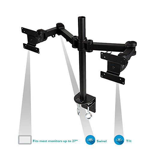 CREATIVE DESIGN This LCD Monitor Pole with double-link swing arm provides a secure and elevated position for two flat-screen monitors to help free up valuable desk and work space. Fully adjustable; tilt, rotate, side-to-side, height and tension settings enable a comfortable and productive viewing position that helps reduce eye fatigue, neck and back strain. The monitors can be easily rotated around the pole to allow others to view presentations and other multimedia from almost any direction.