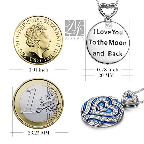 -. Title : NINASUN "Rcason" 925 Sterling Silver Lettering CZ Heart-Design Pendant Necklace - I Love You To The Moon And Back