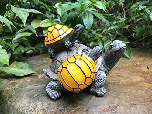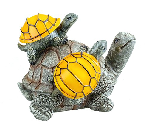 CUTE TURTLE SOLAR GARDEN DECOR: This solar-powered outdoor LED light features Two baby turtles with shells that light up at night on a Mama turtle . They will whimsically illuminate your lawn, garden, deck, or patio.