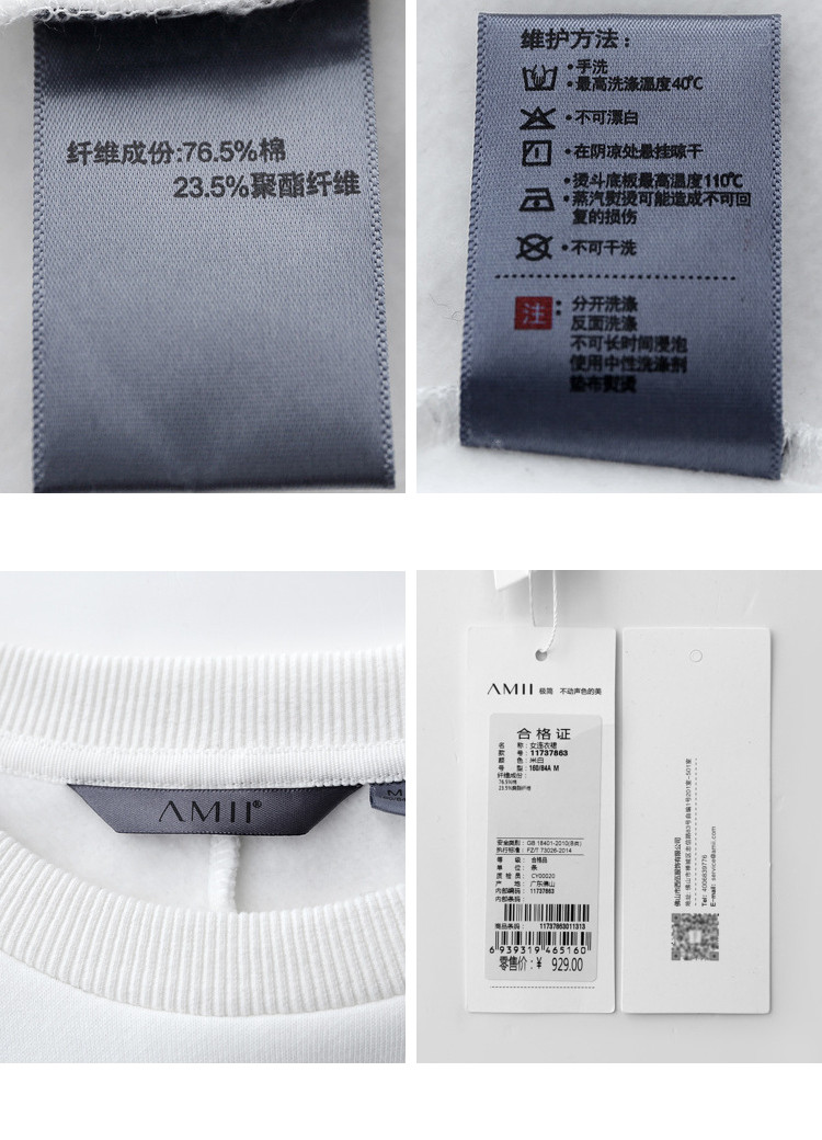 | 洗涤标准: | 悬挂晾干不可漂白40℃以下手洗110℃以下垫布熨烫不可干洗不可浸泡 |