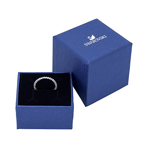 -. Feature : Model: Swarovski Vittore / Rhodium-Plated, Embellished with light blue crystals. Wear one for a dainty look or stack with other / Size: 7.25 / Purchase Includes: 1 Ring, Swarovski Box, . Brand case shape, size, and color may vary. / Rhodium-Plated, Embellished with light blue crystals. Wear one for a dainty look or stack with other rings for a more dramatic look.