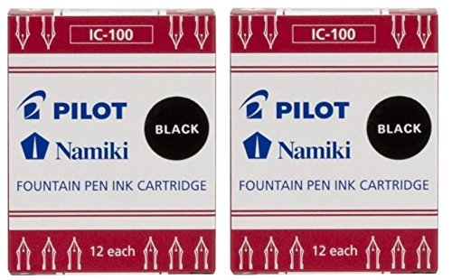 -. Binding : Office Product -. Brand : Pilot -. Color : Black -. EAN : 0787543716178 -. Feature : Created using the highest standards of color / 12 cartridges per pack / Pack of 2 (24 cartridges total) / Consistent ink delivery / For use with Pilot and Namiki fountain pens -. Label : Pilot -. Manufacturer : Pilot -. Model : IC100BLK -. MPN : 69100 -. PackageQuantity : 2 -. PartNumber : 69100 -. ProductGroup : Office Product -. ProductTypeName : WRITING_INSTRUMENT -. Publisher : Pilot -. Studio : Pilot -. Title : Pilot Namiki IC100 Fountain Pen Ink Cartridge, Black, 12 Cartridges per Pack (Pack of -. UPC : 787543716178