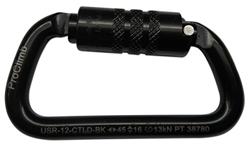 ProClimb USR-12-CTLD-BK Ops Carabiner, Equal D, 4.1" Height, 0.5" Wide, 2" Length, Steel, Black