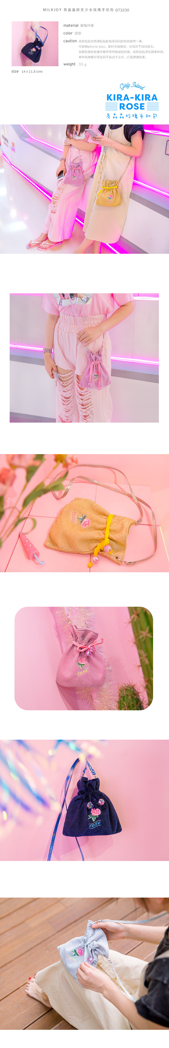 ミルクジョイキラキラローズ刺繍入りクロスボディバッグ原宿ガールイン風財布バンチバッグ