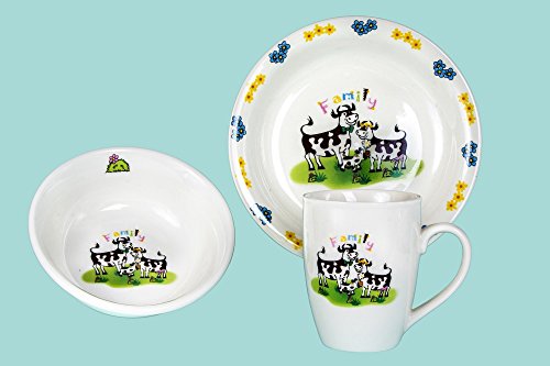 -. Title : Porcelain Dinnerware Kid's Set - Plate, Bowl, Mug- Cows 3-piece Set