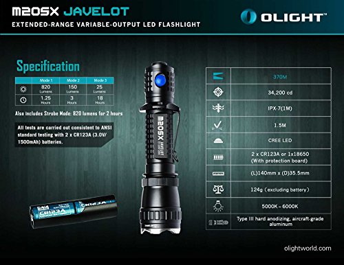 Olight M20SX Javelot 820 Lumesn LED Flashlight Long Throw Distance Search Light Weapon Kit, Includes LegionArms Off Set Mount and Pressure Remote Switch