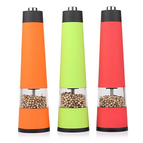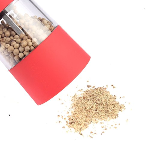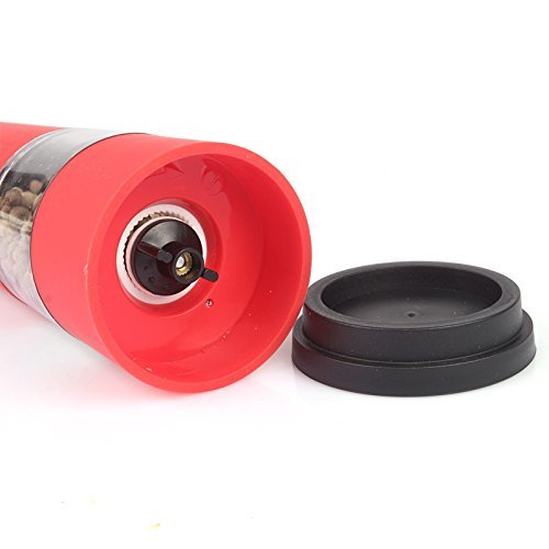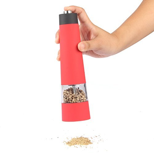 LAGUTE BonMill Multi-function Automatic Electric Salt and Pepper Mill, Battery-powered, High Quality Grinding Mechanism, One-touch Operation, Adjust from Fine to Coarse, Suitable for Restaurant Hotel Kitchen and Home (1, Red)