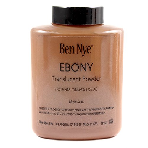 -. Binding : Misc. -. Brand : Ben Nye -. EAN : 0786771861780 -. Feature : Ebony Translucent Powder is the perfect choice for setting darker brown cream makeup. It has a translucent finish with a hint of dark ebony so as to not mute the underlying foundation. -. IsAdultProduct : 0 -. Label : Ben Nye -. Manufacturer : Ben Nye -. MPN : 784779021878 784779022363 -. PackageQuantity : 1 -. PartNumber : 784779021878 784779022363 -. ProductGroup : Beauty -. ProductTypeName : BEAUTY -. Publisher : Ben Nye -. Studio : Ben Nye -. Title : BEN NYE Ebony Classic Translucent Face Powder 3 Oz. -. UPC : 786771861780