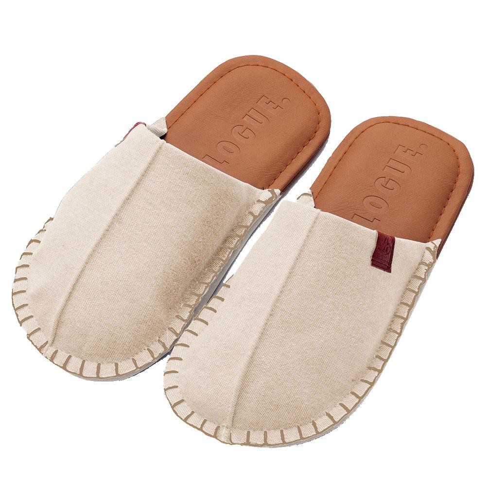 フェイクレザーの底の型押しやステッチなど、細かいデザインにもこだわったオシャレなスリッパ。お部屋で履くと気分があがります♪