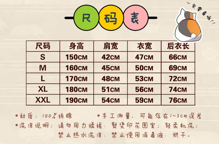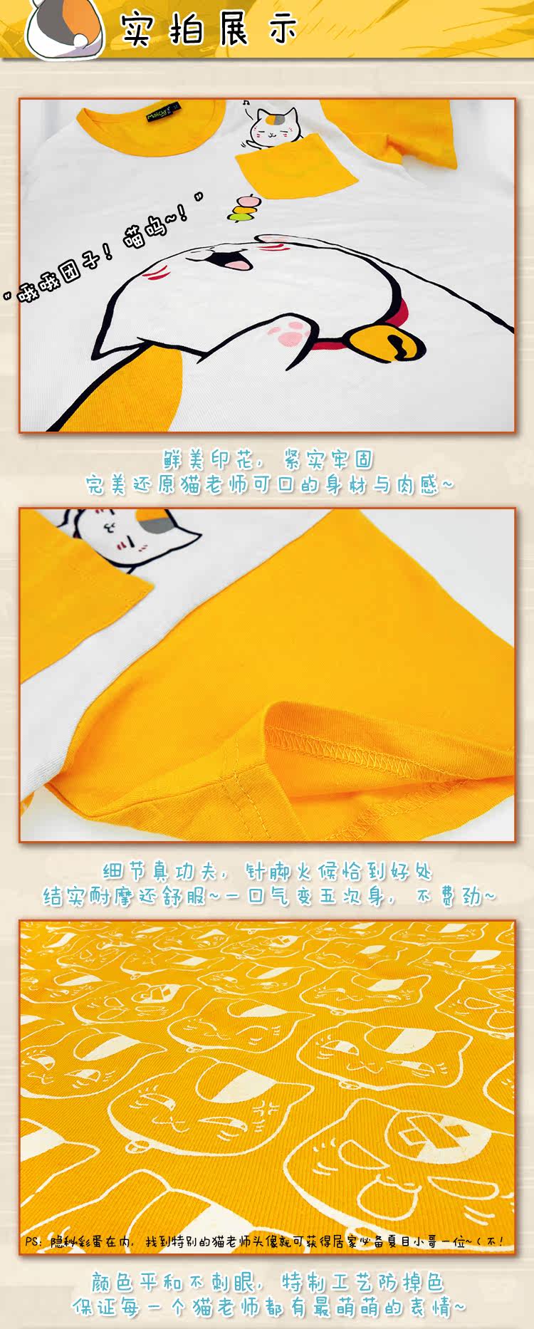 动漫周边男女拼接纯棉T恤汗衫夏目友人帐猫老师斑娘口三三