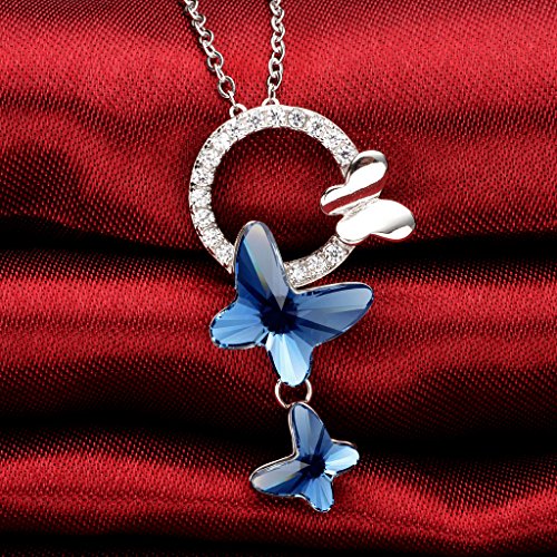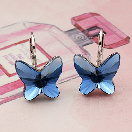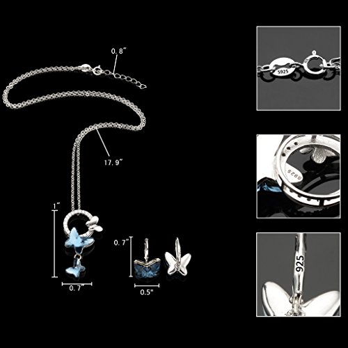 -. Title : EleQueen 925 Sterling Silver Butterfly Denim Blue Jewelry Made with Swarovski Crystals Pendant Necklace Stud Earrings Set