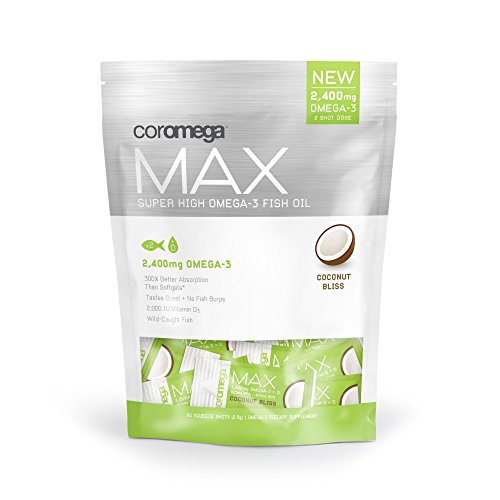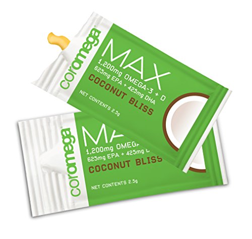 ReleaseDate : 2016-10-01 Studio : Coromega Publisher : Coromega Binding : Health and Beauty Product Description Coromega MAX has a powerful 2,400 mg of Omega-3 Fatty acids including DHA EPA which means the maximum health benefits for the heart, body, muscle and mind. Our delicious Coconut Bliss formula is uniquely emulsified to provide 300% better absorption than standard soft gels. Tastes like a freakin' Pina colada- you'll be begging for more.