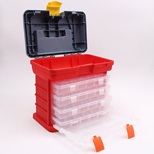 QULife Portable Tool Box Organizer with 4 Drawers & Adjustable Dividers Perfect for Art, Crafts and Sewing Storage