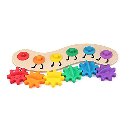 -. Feature : Safe Material: Made of smooth plywood, no burr and safety for toddlers playing with. / Color Cognitive Ability: Contains 6 gears in different colors, great for baby to improve color cognitive ability. / Perfect Size: Chunky size especially fits for little hands, develop kids observation ability and hand-eye coordination. / Easy to Play: Turn the gears slowly and watch each interlocking segment move the next, or see how fast you can make the caterpillar "crawl" on the wooden base, let children know the simple physical P.R.Inciples. / Ideal Gift: A helpful educational toy to improve children's intellectual development and and patience cultivation.Suitable for ages 3+, must be used under adult supervision.