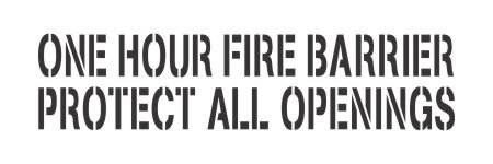 This stencil has been developed to satisfy the requirement for identification of rated walls. Our One Hour Fire Barrier stencil is laser cut on 10mil gray Mylar. **3 and 4 inch lettering meets The National Fire Prevention Association 5000 Building Construction and Safety Code requirements.