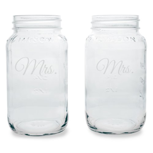 - Both mason jars are engraved with "Mrs."