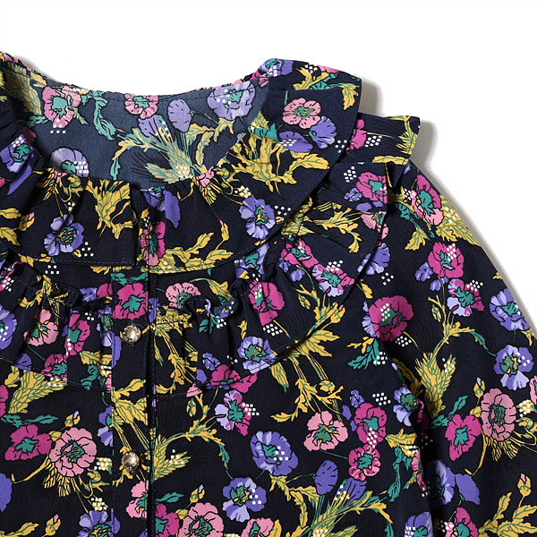 상세설명-소재촉감이 좋은 꽃나염 프린트 블라우스로 여아스러운 연출할때 좋은 아잍템이다.