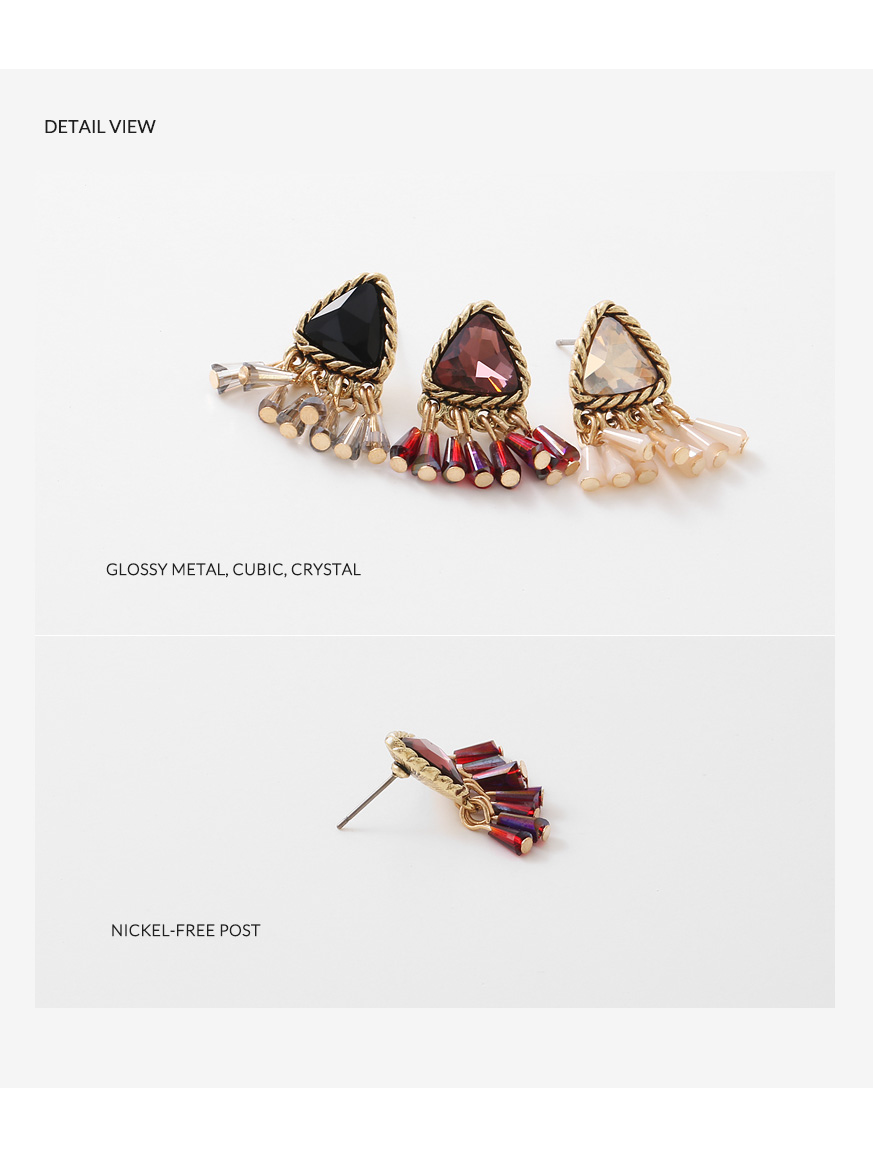 삼각 모양 큐빅과 쪼르르 장식된 크리스탈의 시원 시원한 컷팅이 움직일때 마다 눈부시게 빛나는 제품입니다.