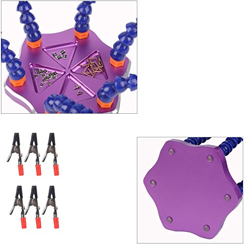WINGONEER Soldering Station Tool with 6 pcs Helping Hands (6 Arms,Non-slip Aluminum Base,Built in Trays,Heat Resistant covers, 360 Degree Swiveling Clips)