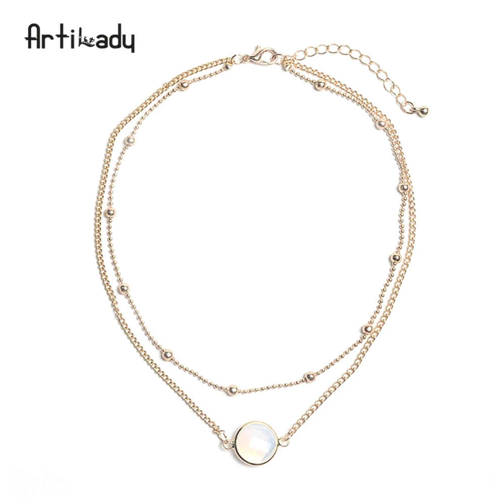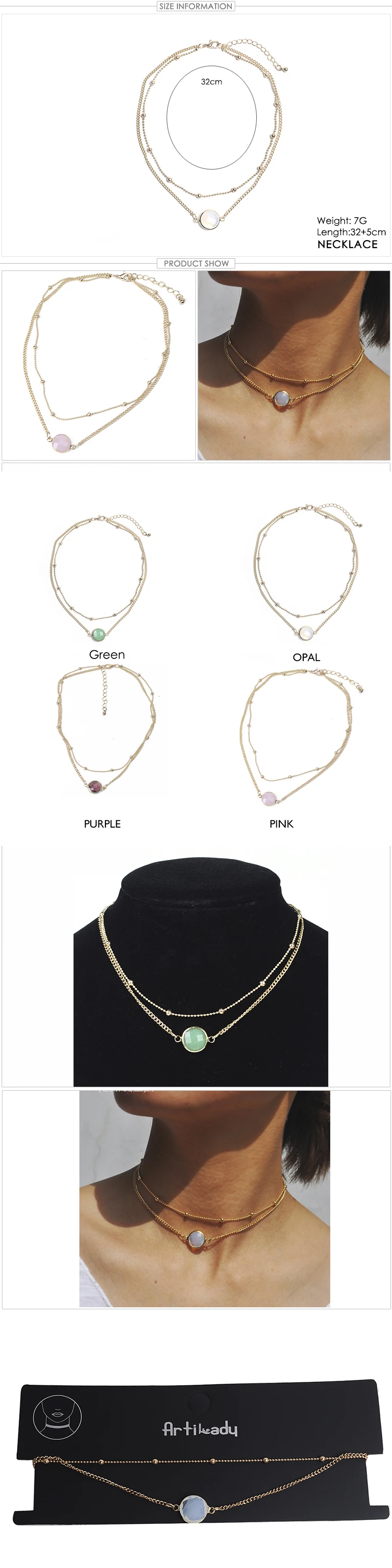multi layer necklace:opal pendant necklace