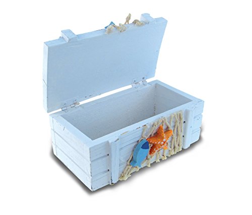 - This handpainted box features a hinged lid to keep your jewelery and other small items securely inside. Boasts nautical inspired decorations including rope, fishes and seashells.