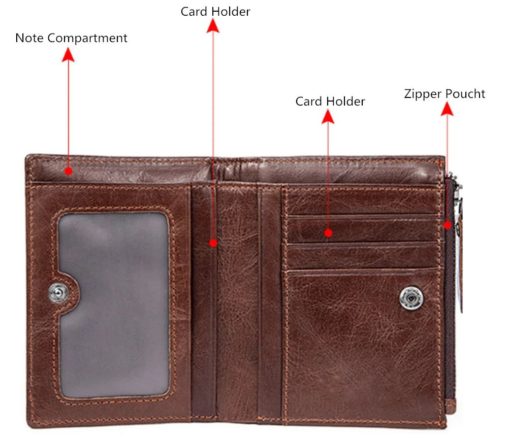 Interior:Passcard Pocket,Interior Compartment,Photo Holder,Note Compartment,Zipper Poucht,Card Holder