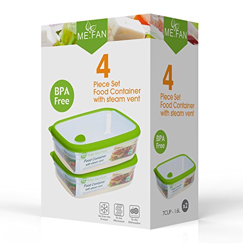 ME.FAN - Bento Lunch Box with Steam Vent - Meal Prep Containers - Food Storage Containers - BPA Free - Plastic - 4-piece Set - Big Size [55oz / 6.4Cup] Glass Green