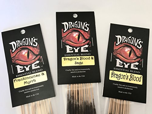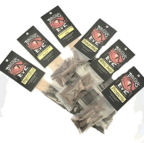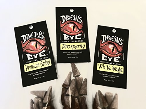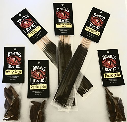 Dragon’s Eye Incense Sticks & Incense Cones,3 Packages of 16 Incense Sticks:Dragon Blood,Dragon Blood & Sage,Frankincense & Myrrh.3 Cones Packages of 16 Incense:White Sage, Prosperity & Prem.Amber.