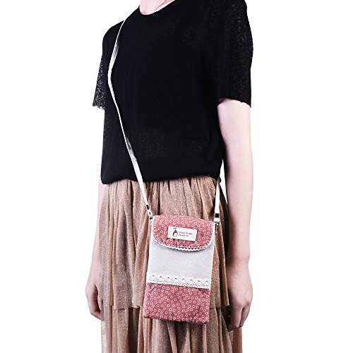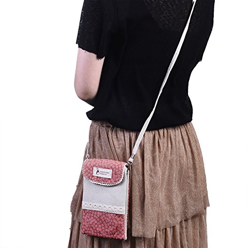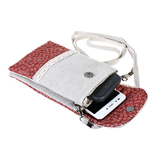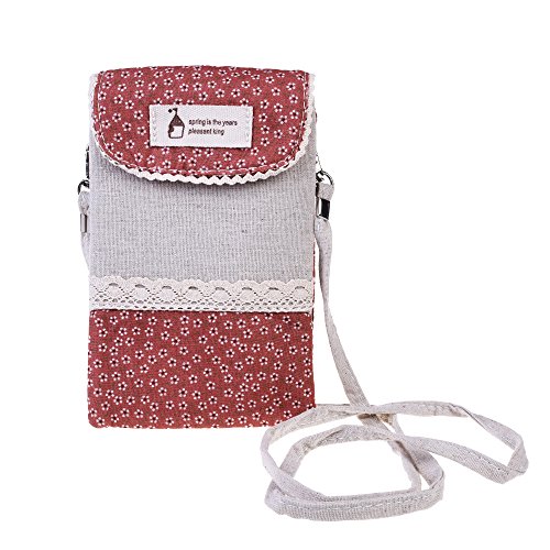 Made of linen fabric, decorated with lace and small white flower, Common snap on button closure, keep your items safe in it Dimension:6.5"(L)x4.5"(W), the shoulder strap measures 46 inches, which cannot be able to adjust 2 Main Pockets 1 mini pocket in between, you can slip into a phone and hold a few cards, cash, lipstick, keys, tickets and other small items, good for a short travelling With Shoulder Strap design, you can wear this pouch cross-body or Single shoulder. Super sturdy and Easy to Carry Tiny cute and lightweight mini shoulder bag adds your minimal bulk makes it the best choice for young ladies and girls 0 |
