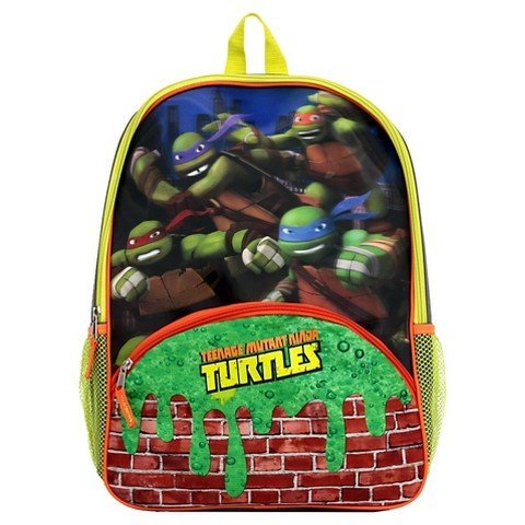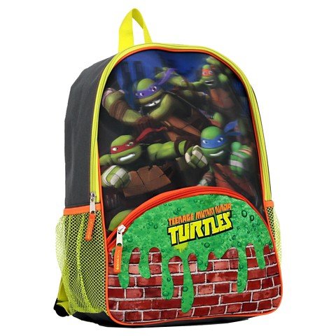 Beware of the ooze! This TMNT Lenticular & Slime Backpack is perfect for school as its 3D effect will have your little boy feelings as if the turtles themselves got his back. The backpack features an slime front zip pocket for smaller items, and a large main compartment. It also has two side mesh pockets for quick stashing and a hook for hanging.Feature