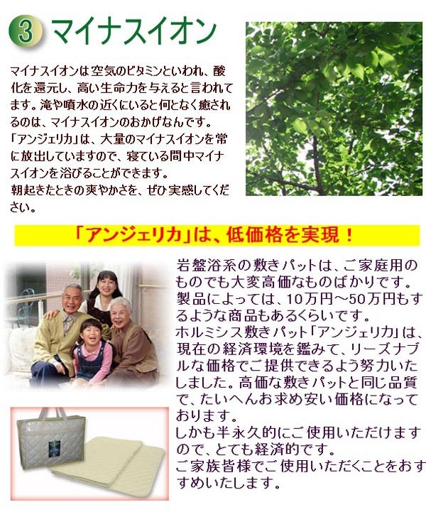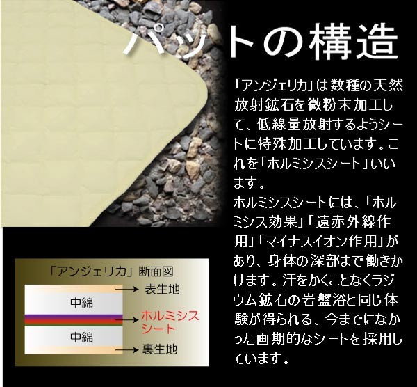 ホルミシス効果は半永久的。洗っても効果はまったく変わりません。○【ホルミシス敷きパット「アンジェリカ」 】ベッドや布団の上に敷いて寝るだけで、岩盤浴気分が味わえます○