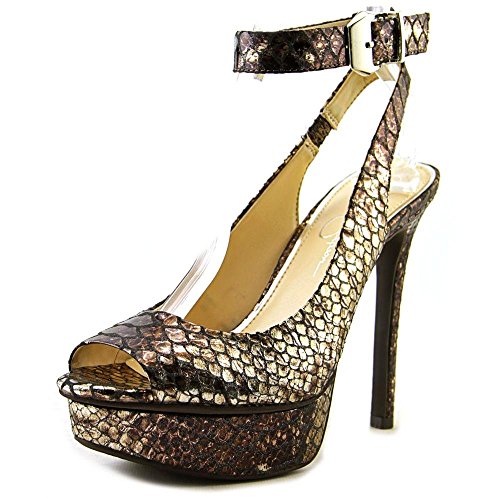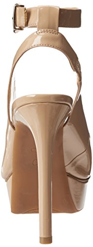 Island platform pump featuring peep toe, adjustable ankle with buckle closure, and elasticized slingback strap