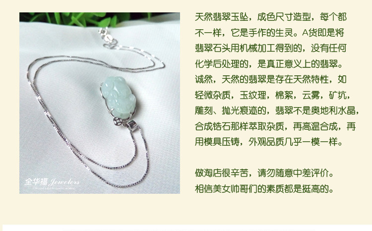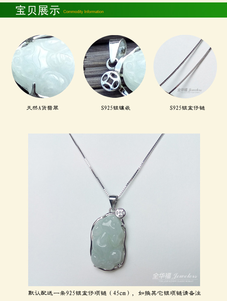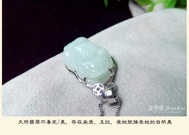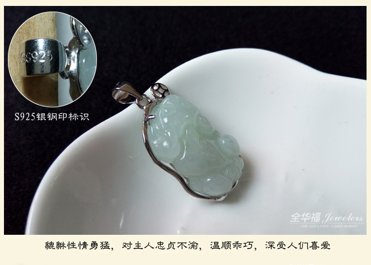 正品开光翡翠貔貅吊坠女款银镶玉冰种天然玉坠纯银锁骨项链带证书