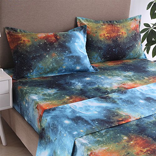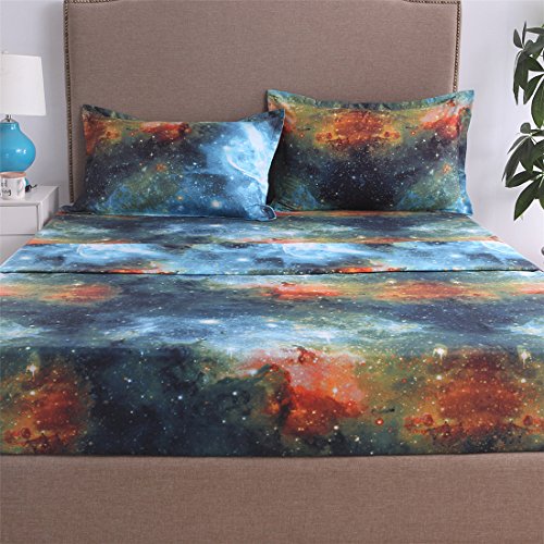 Features: Material: 30% Cotton 70% Polyester Microfiber 3D reactive printing, outerspace galaxy universe pattern, very attractive, so that the sheets will stay vibrant for many years to come.
