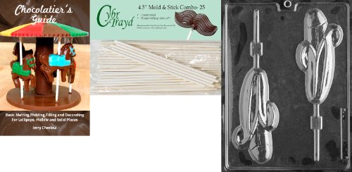 Cybrtrayd 'Licky Lolly' Adult Chocolate Candy Mold with 25 4.5-Inch Lollipop Sticks and Chocolatier's Guide