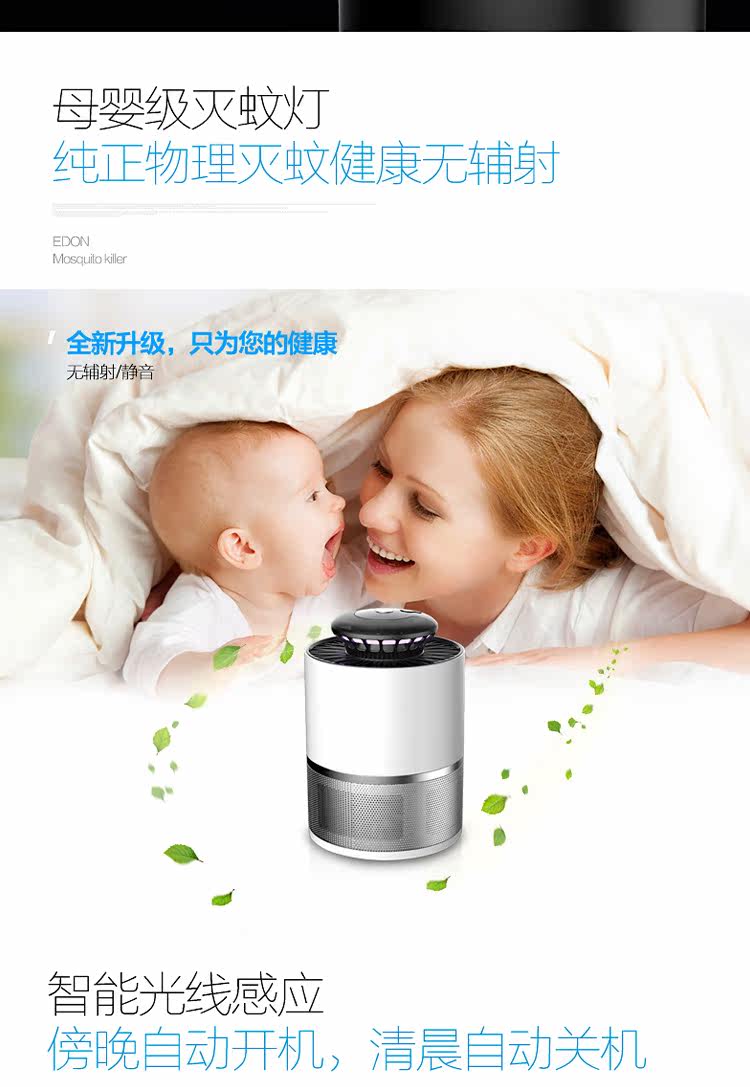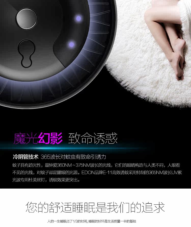 LED light source (360NM~375NM) with mosquito killing, zero-impact on sleep, Soft Glow, electricity saving, perfect durability