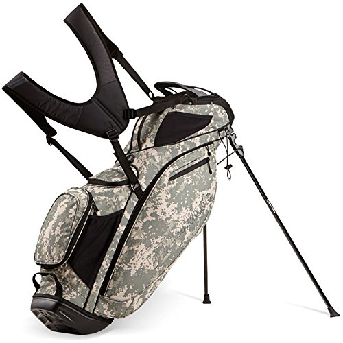 Contoured ergonomic shoulder strap. 9 total pockets. Cart compatible base. 3.9 lbs. Single strap attachment. Umbrella sleeve. Towel loop. Nylon webbing Trunk handle.