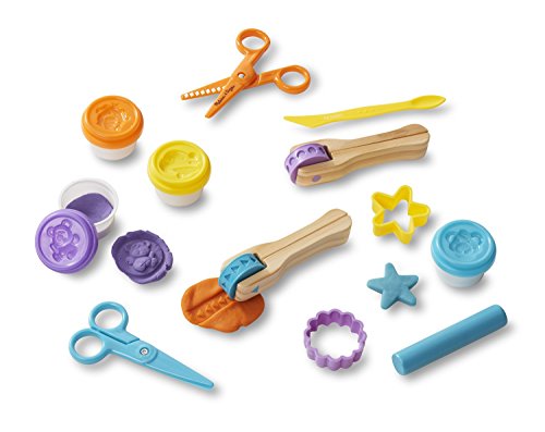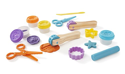 Let the good times roll! Featuring 8 exciting tools and 4 vibrant colors of modeling dough, this set invites children to cut different shapes with zigzag and straight scissors, sculpt circles and triangles with pattern wheels, and mold adorable figures by turning over the covered tubs and pressing. Encourage creativity as well as color and pattern recognition with Cut, Sculpt & Roll!