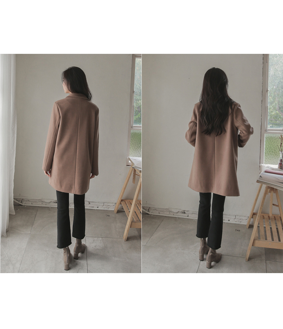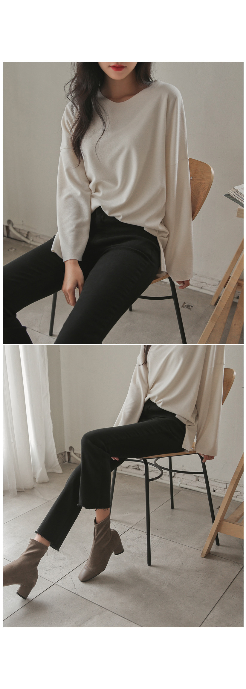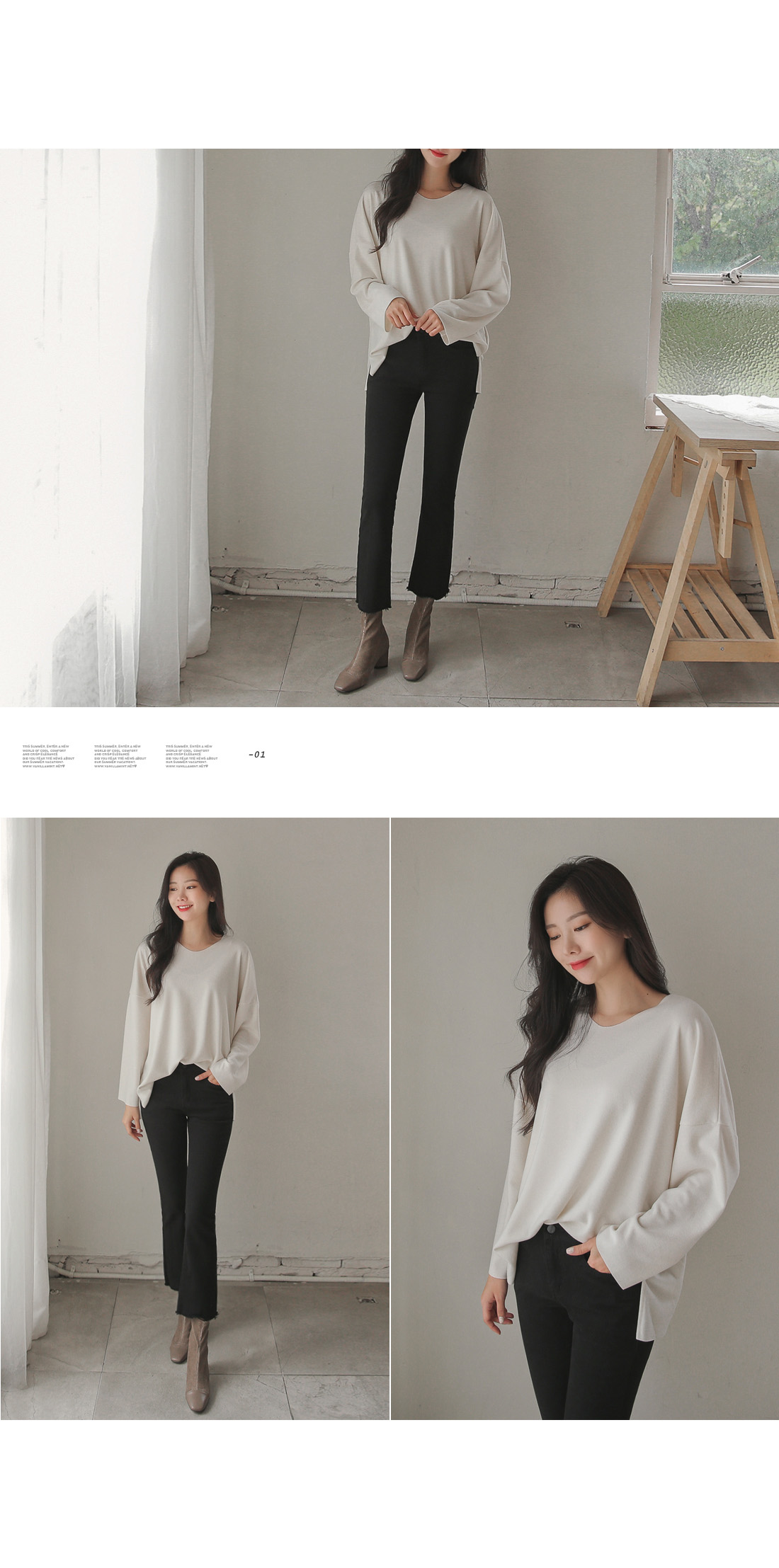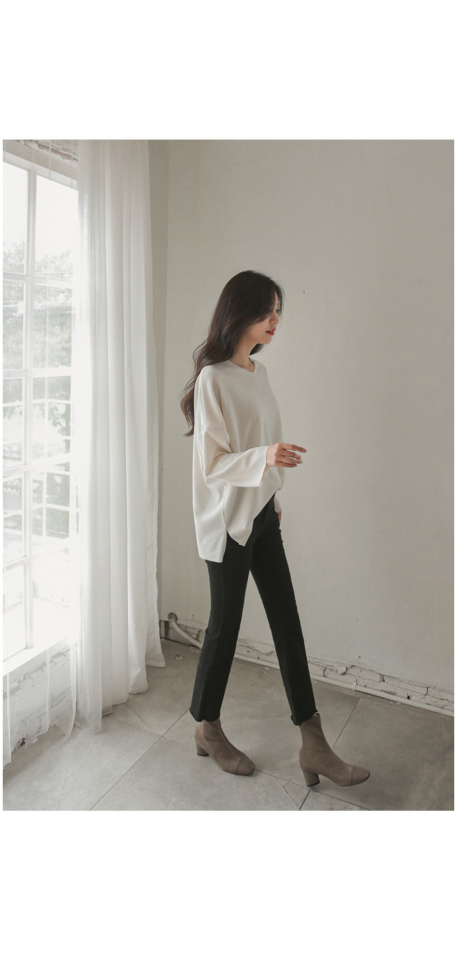 밑단의 자연스러운 컷팅 디테일로 포인트를 주었으며